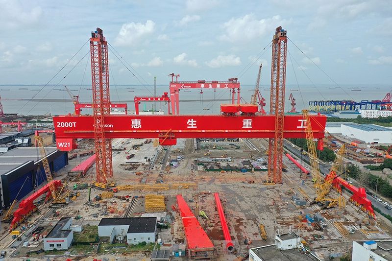2000t×200m造船門式起重機(jī)服務(wù)于惠生海工南通基地的船塢擴(kuò)建工程,南通基地是惠生海工主要的浮式設(shè)備生產(chǎn)建造基地。船塢擴(kuò)建工作是整個(gè)南通基地改造項(xiàng)目的重中之重,對(duì)惠生海工增強(qiáng)自身實(shí)力,升級(jí)服務(wù)能力具有戰(zhàn)略意義。未來改造完成后,惠生海工將能夠?yàn)槿蚩蛻舸笮汀⒊笮透∈椒桨傅腅PCIC總包服務(wù)提供更多選擇。