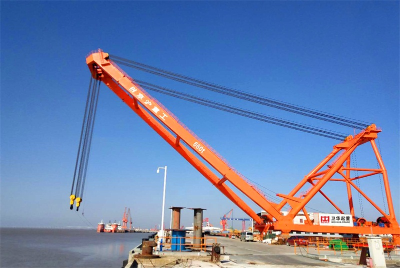 該起重機用于京滬重工碼頭,主要承擔碼頭吊運22000m3LPG液罐。兩吊鉤抬吊起重量可達660噸,變幅幅度21.5-54m。